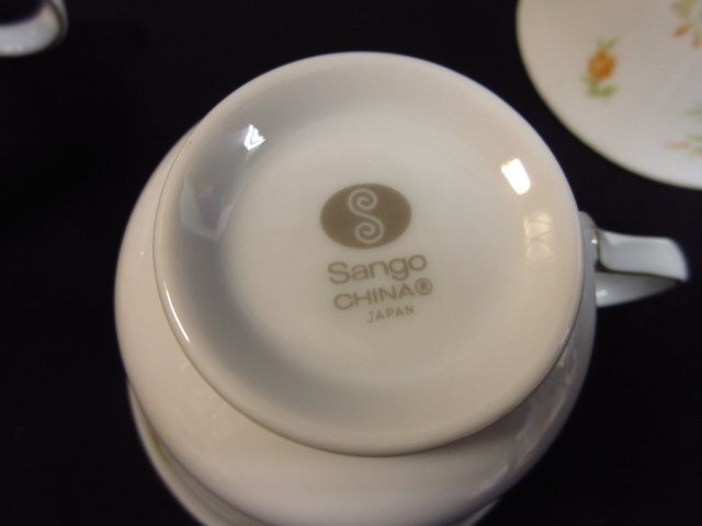 t5408 未使用保管品 Sango カップ&ソーサー6客セット 茶器 洋食器 ホワイトxオレンジ系 花柄 三郷陶器