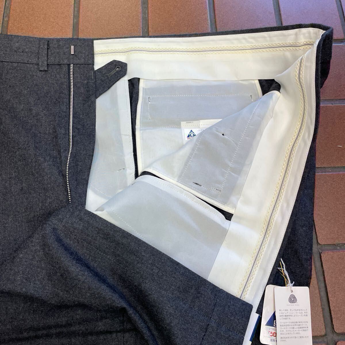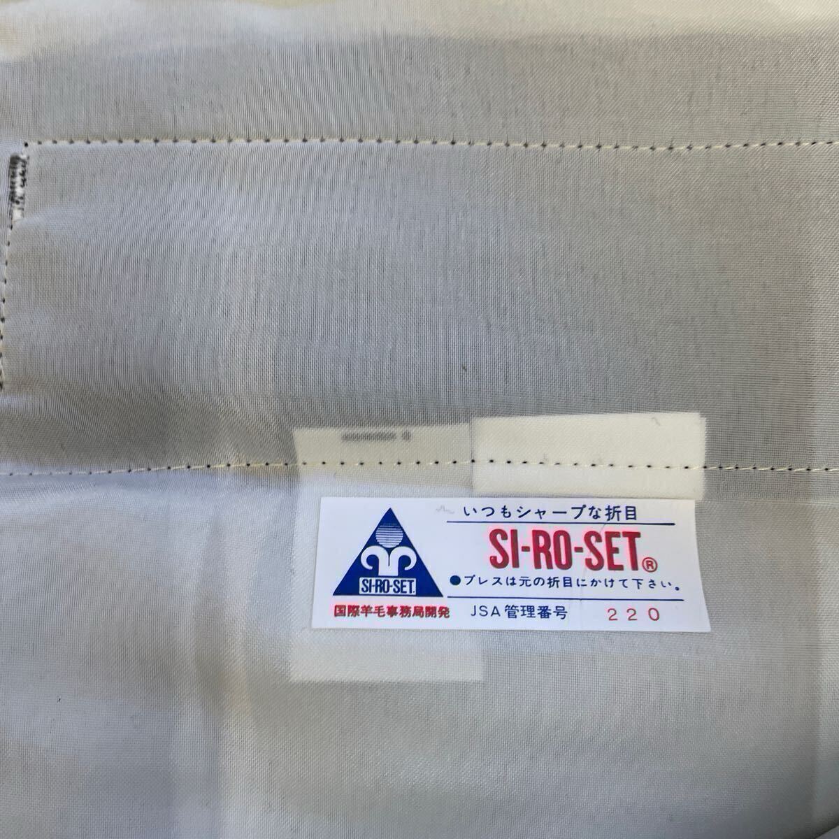 このズポンの折目には、1.WS.国際羊毛事務局が開発した「シロセット」加工が採用されています。長い間着用しても、雨や水にぬれても折目はいつもシャープで消えません。着用後は裾を上にして吊って下さい。折目のシャープ性が損なわれたり、シワがきつい時は十分に霧を吹くか、軽くアイロン掛けして下さい。「シロセット」加工製品にはポケット裏に品質管理のラベルがついています。加工品質のお問い合わせは管理番号とともに上記あてにどうぞ。