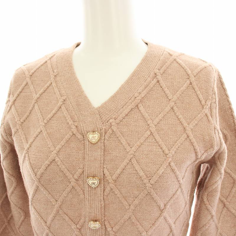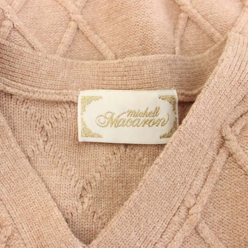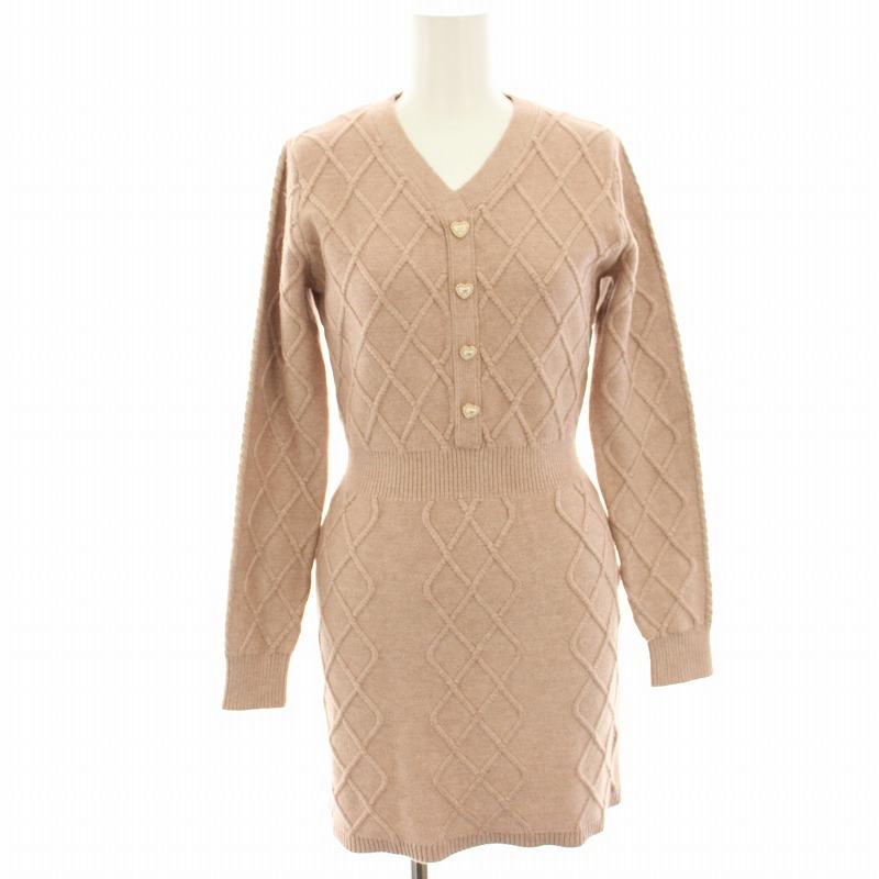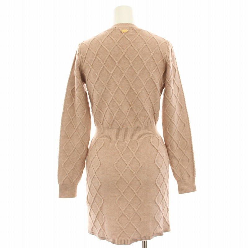 ミシェルマカロン michell Macaron フロントボタンニットワンピース ミニ 長袖 タイト XS ピンクベージュ SFY0271C /HN