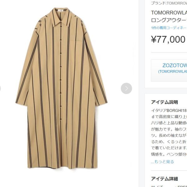 | コメント | 〈TOMORROWLAND .B〉のロングアウターシャツは、前を開けるとアウターとしても、前を閉めるとワンピースとしても着られる大人の着回しアイテム。
