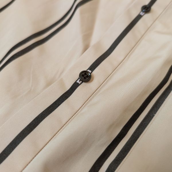 インポート生地を使用したハリ感と上品な艶感のあるクリアでモダンなストライプ柄が魅力の1着です 胸ポケット×1 サイドポケット×2 ユーズドになりますが使用回数少なく状態の良いお品です。傷や汚れもございません。 |