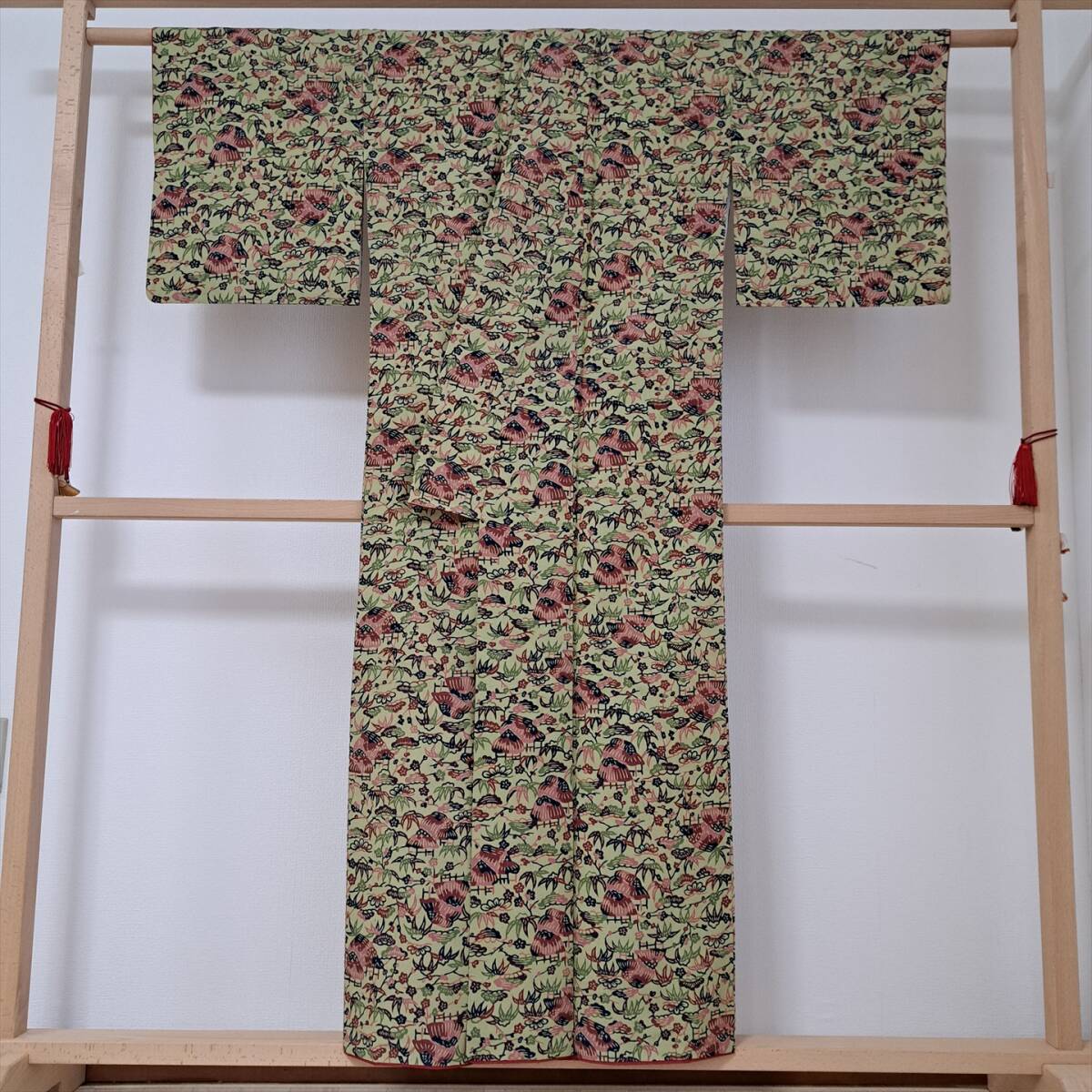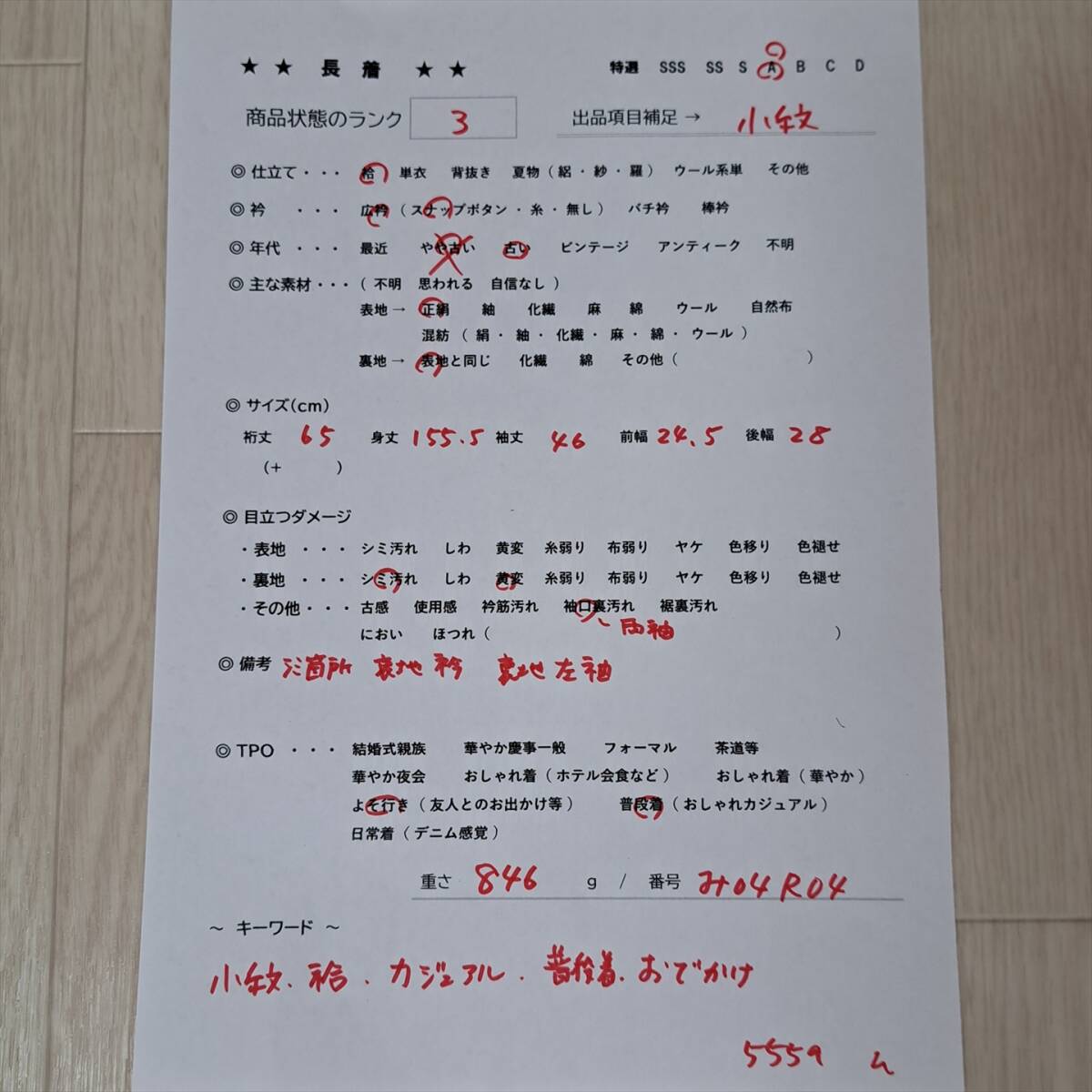 即決■着物の越田■裄65身丈155.5 正絹 小紋 袷 カジュアル 普段着 おでかけに ■み04R04