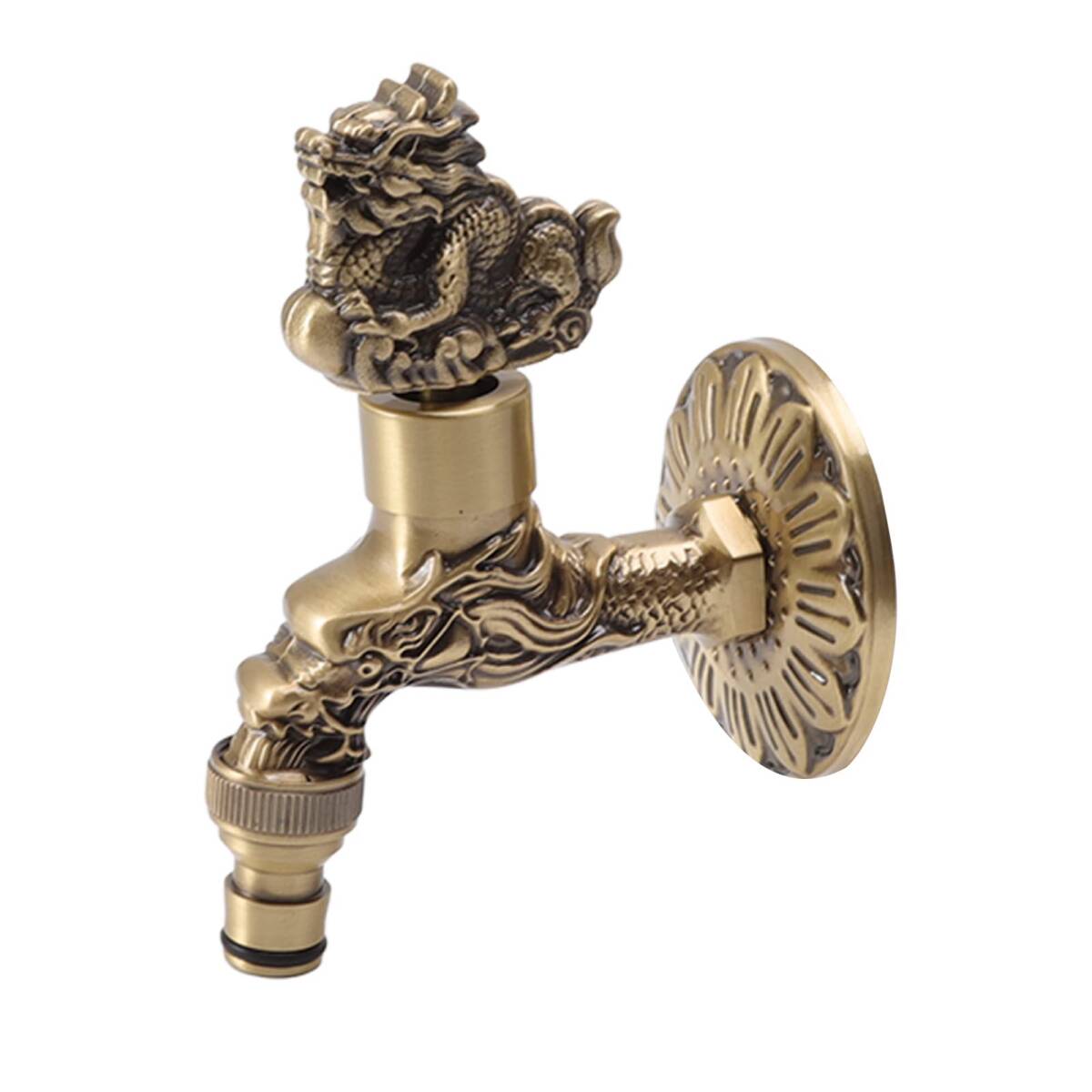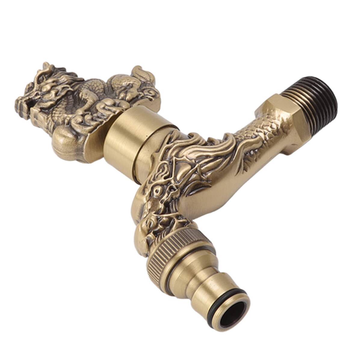 #48P-J3NT 蛇口、G1 / 2めねじ防錆ホームデコレーション銅水タップ盆地の幅広い用途 麒麟と龍の模様