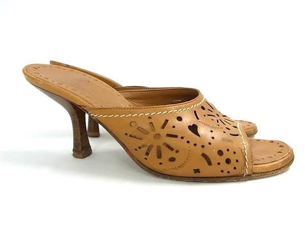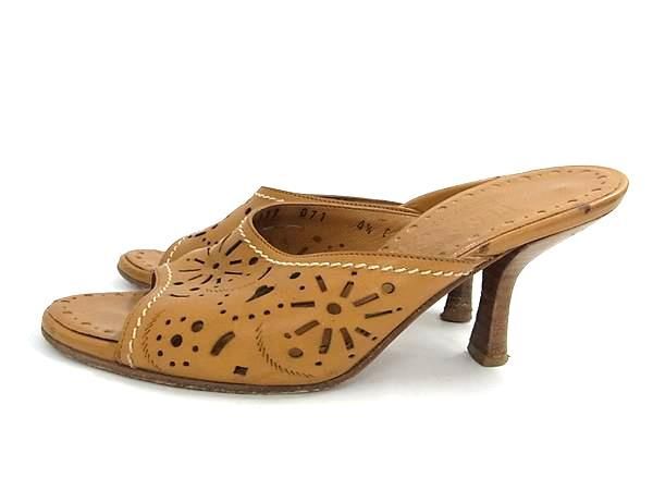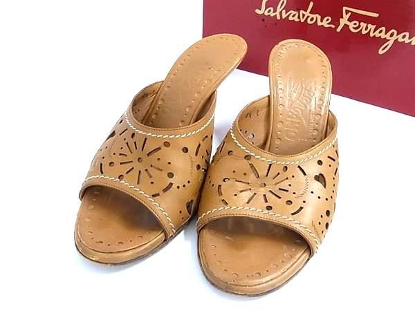 Salvatore Ferragamo フェラガモ レザー パンチング ヒール サンダル 表記サイズ4 1/2 (約22cm) 靴 レディース ブラウン系 DF7025