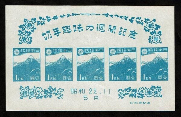 1947年 切手趣味週間記 念小型シート(北斎富士) 未使用