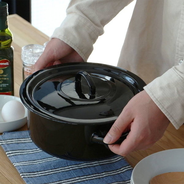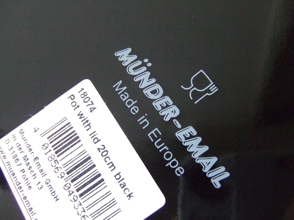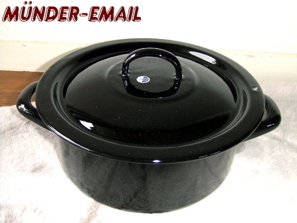 新品/20cm☆ドイツ製MUNDERミュンダー☆ホーロー両手鍋ブラック 蓋付きヨーロッパusa北欧ユーロih鍋キャンプ葫蘆pot男前with黒おしゃれlid