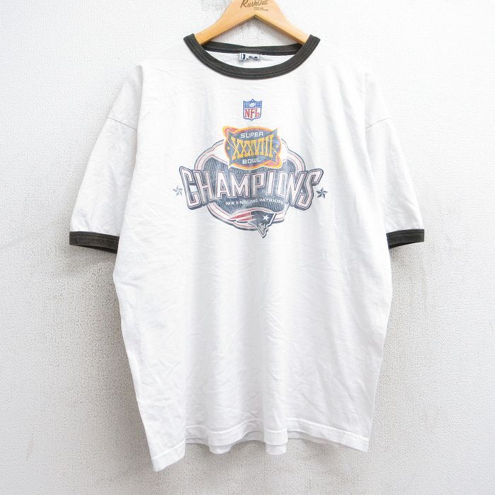 【商品名】 XL★古着 リー Lee 半袖 ビンテージ Tシャツ メンズ 00年代 00s NFL ニューイングランドペイトリオッツ 大きいサイズ コットン クルーネック 白 リンガー アメフト スーパーボウル