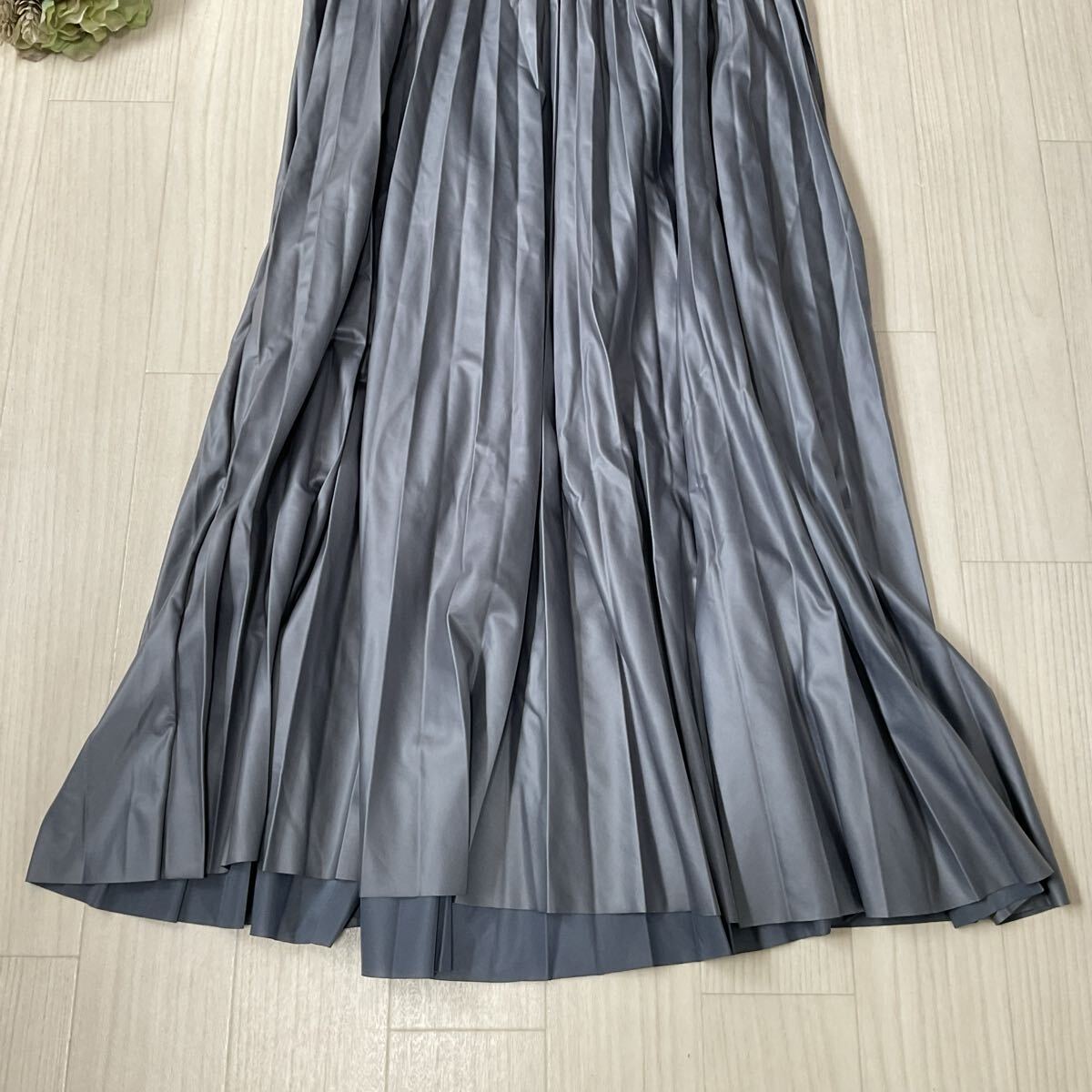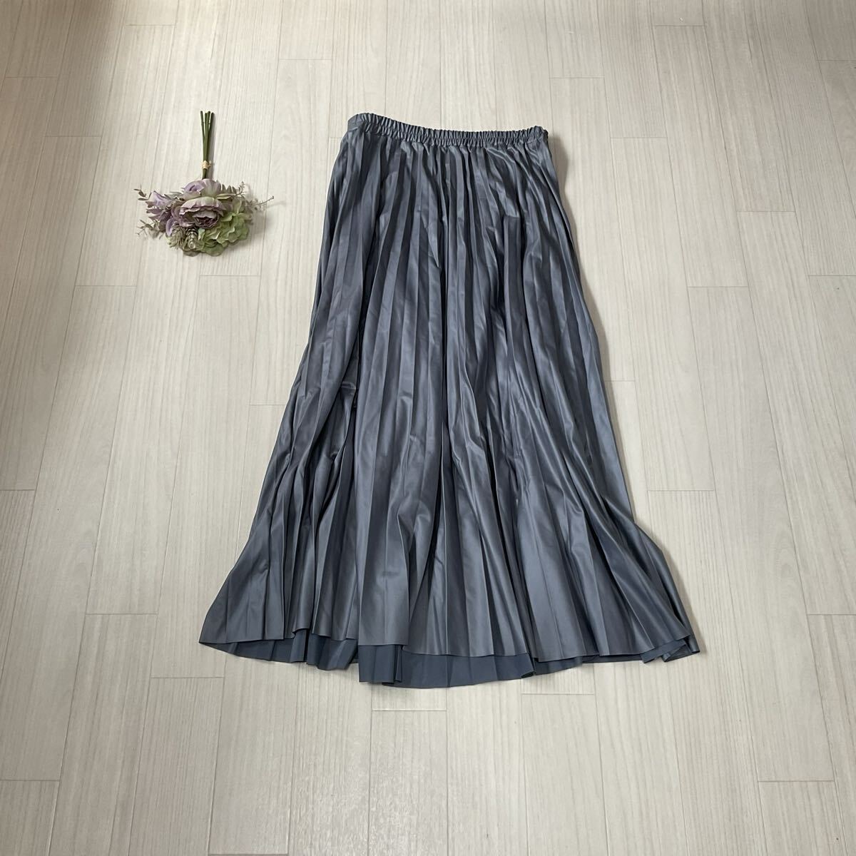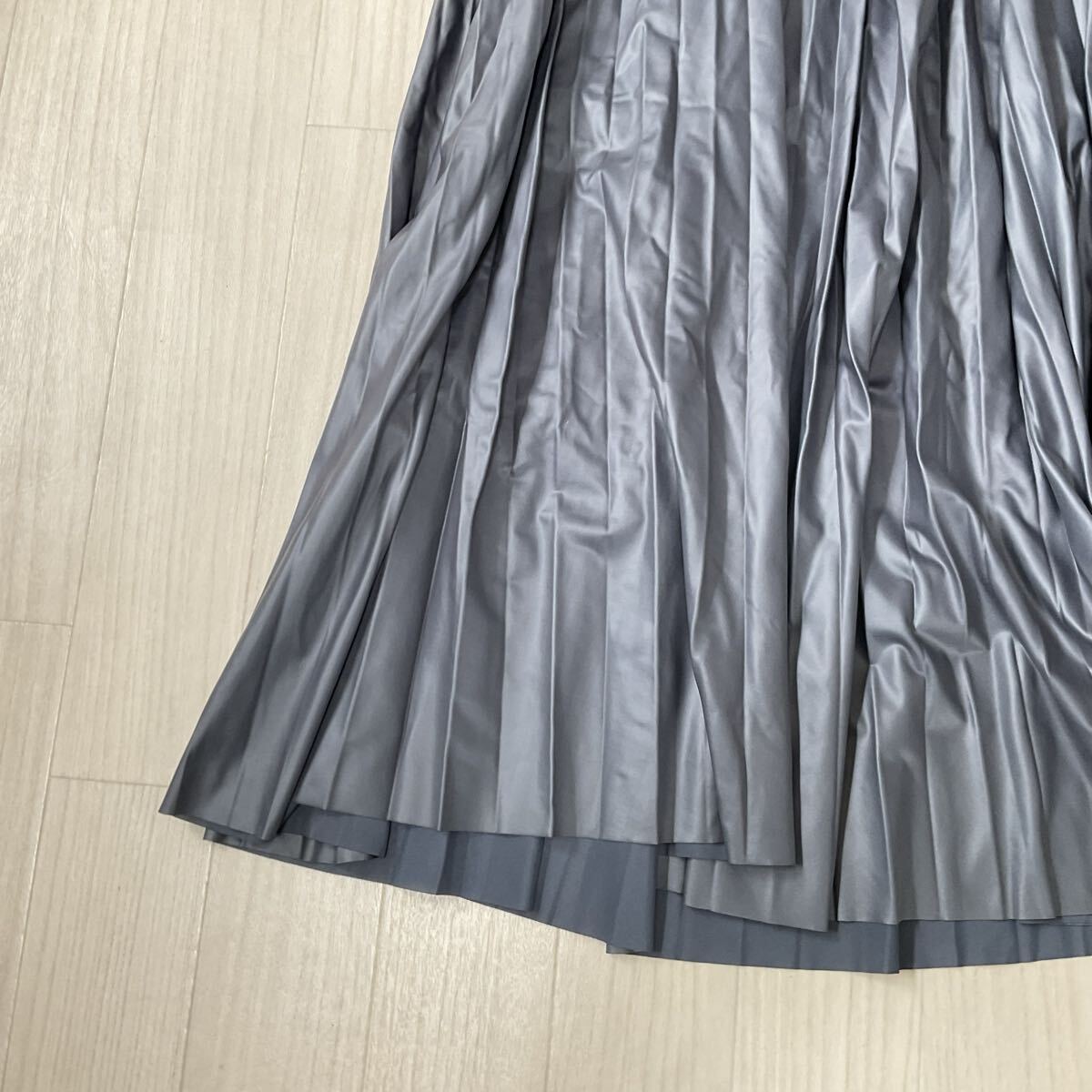 【未使用タグ付】【人気Lサイズ】Classical Elf クラシカルエルフ フェイクレザーロングプリーツスカート グレー 光沢感 L-XLサイズ clfo19 大人の品格