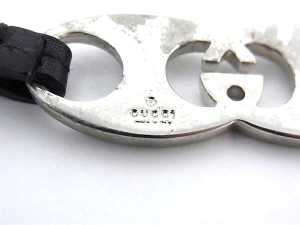 GUCCI グッチ インターロッキングG レザー キーホルダー ストラップ チャーム メンズ レディース ブラック系×シルバー系 DF9640