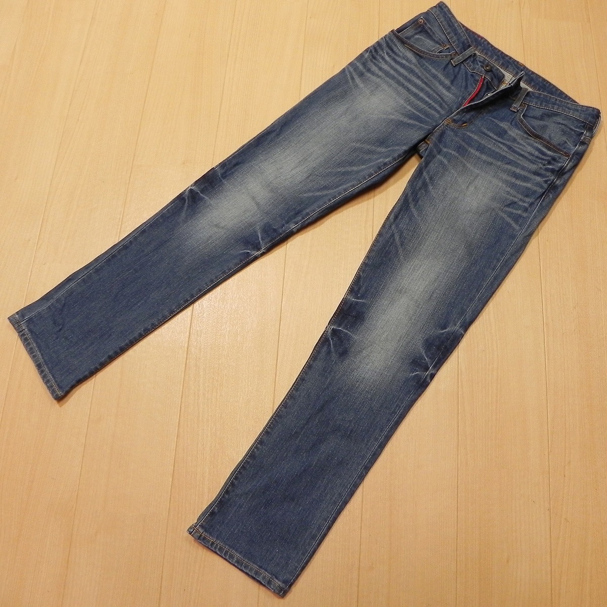 )676★【EDWIN】エドウィン KQ33 GOLDRUSH ストレッチ デニムパンツ w30 ジーンズ ジーパン テーパード ユーズド加工 古着 即決 ★