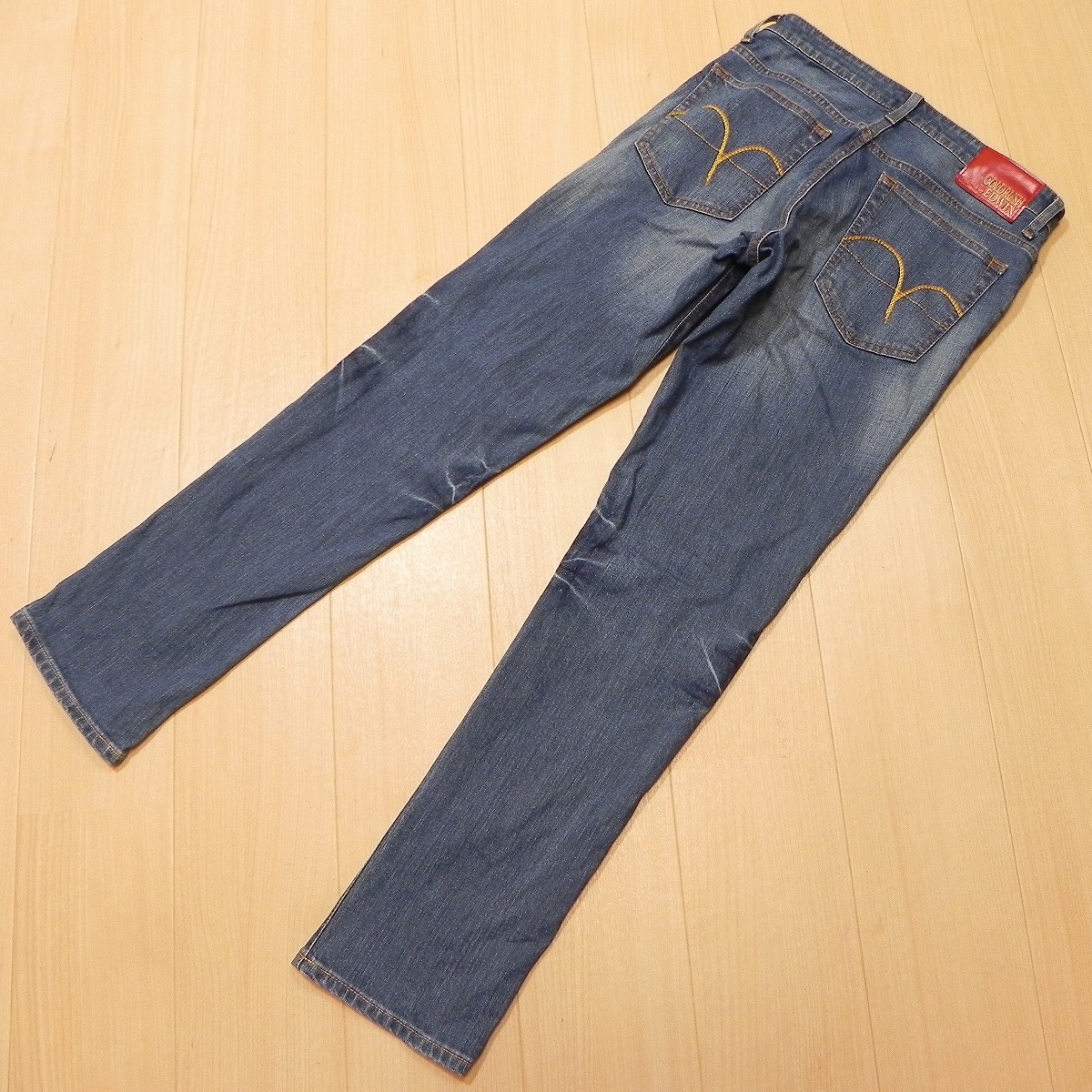 ●あくまでも古着のため、ノークレームノーリターンでお願いいたします。使用感はございますが、とくにダメージございません。素材はストレッチデニムです。ユーズド加工が雰囲気抜群です。 裾はオリジナルのチェーンステッチです。