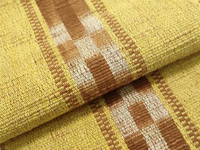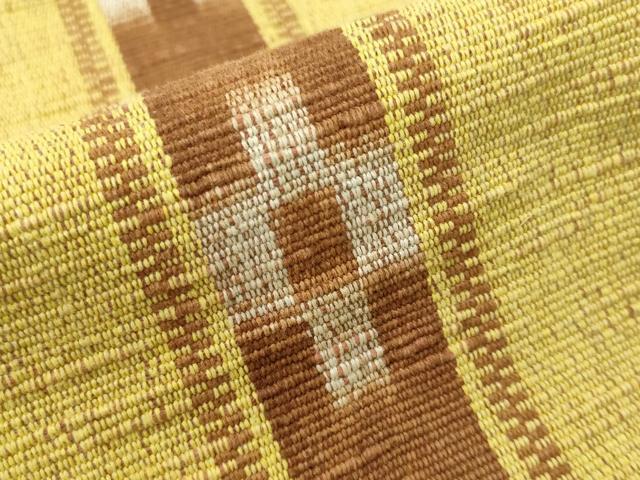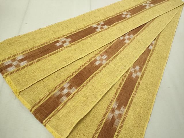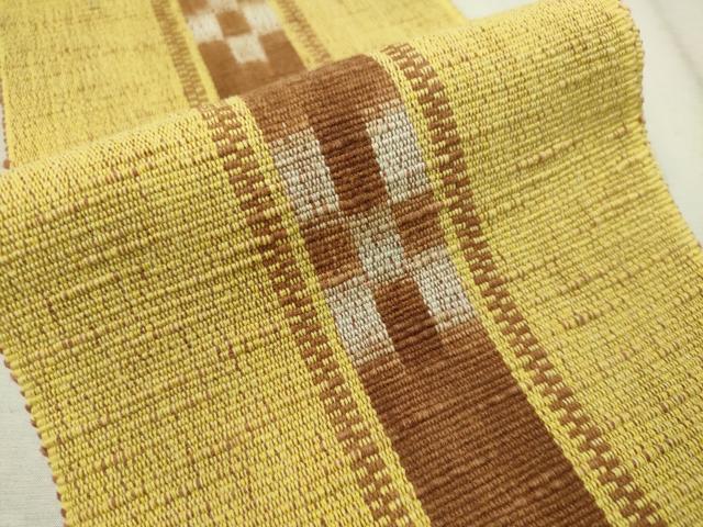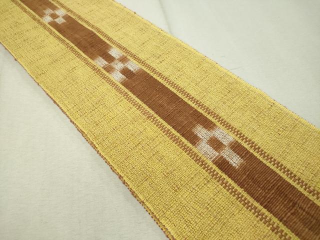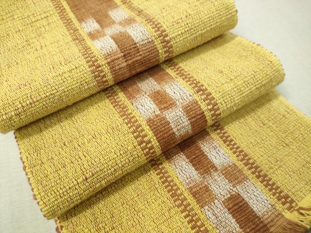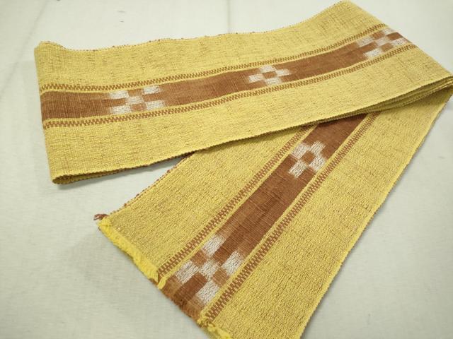【綿】 状態は締めてはおりますが 特に目立ったシミ汚れなどもなく大変良い状態です。 八重山地方で手織りされるミンサーの帯はその素朴な風合いと異国風の雰囲気がございます。 五つのマス目と四つのマス目を織込むミンサー織りには、 「いつ(五つ)の世(四つ)までも、末永く」との思いが込められているとのことです。 琉球王朝時代に藍一色で織られた「ミンサーフ(ウ)」という帯を、 女性から愛する男性に贈られたものが原型と言われます。 大変上質な逸品になります。 お安く出品致しますので、是非この機会にいかがでしょうか? |