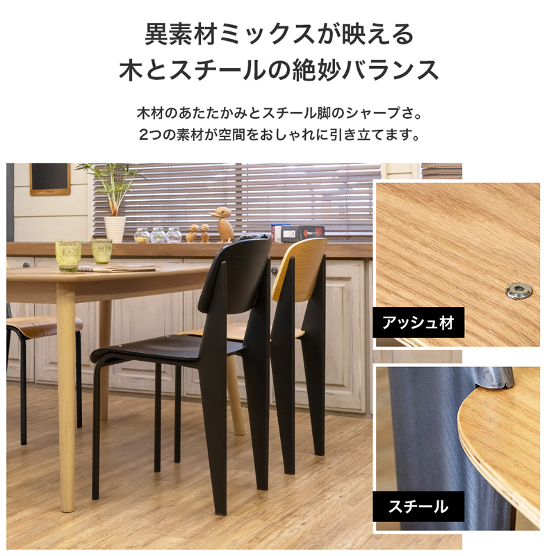 | 材質 | 背もたれ、座面:積層合板(アッシュ材) フレーム:スチール(ポリウレタン樹脂塗装) |