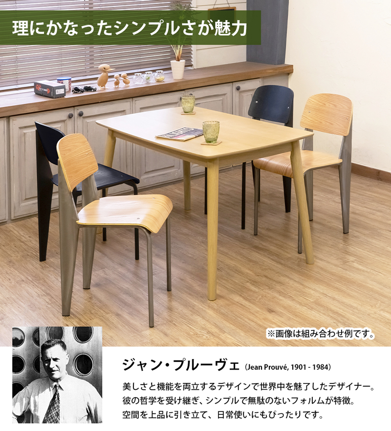 | 商品説明 | 完成品 構造美と機能美が融合! ジャン・プルーヴェの名作スタンダードチェアをお手頃価格でお部屋に取り入れるチャンス。 背もたれと座面は滑らかなカーブが特徴で、見た目はスリムで洗練された印象。 それでいて積層合板を使った構造でしっかりと丈夫です。 木のあたたかみとスチール脚の組み合わせがモダンでおしゃれな雰囲気を演出します。 カラーはブラック/シルバーを基調とした3色から選べ、ダイニングやデスク用にもおすすめ。 2脚セットなのでまとめて揃えるのにも便利です。 |