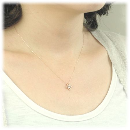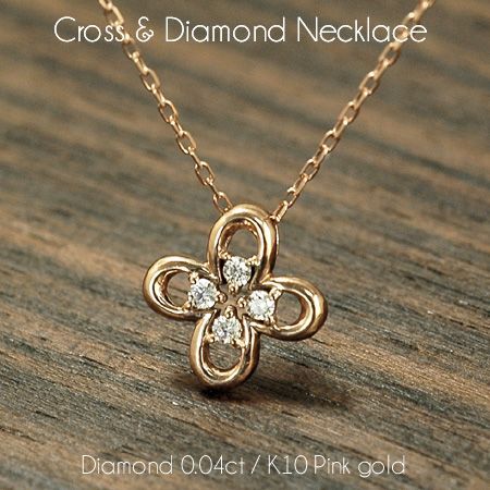 丸くてかわいいクロス形とダイヤモンドが輝くネックレスです。