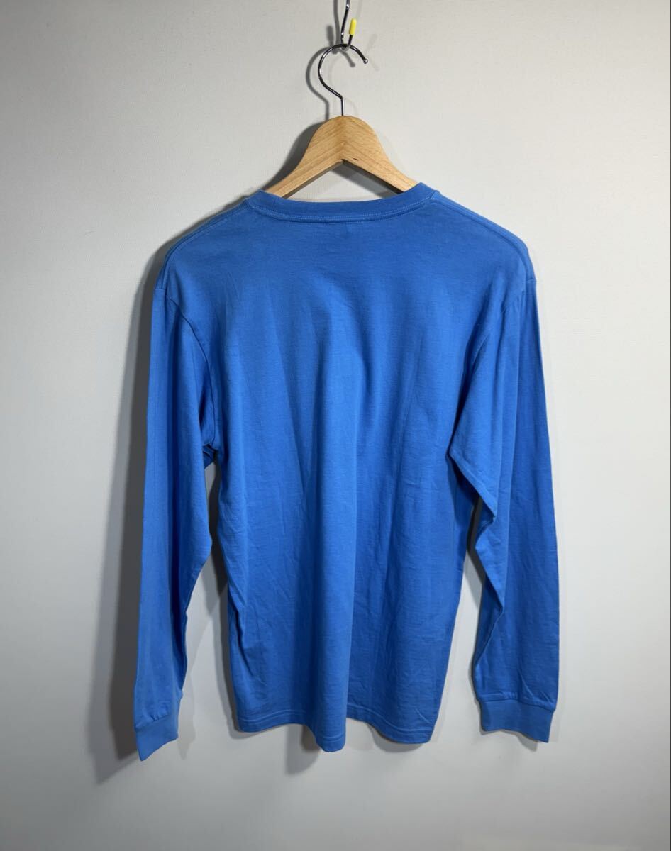 鮮やかな青色の長袖Tシャツ、AIR MAX 87のグラフィックプリント付き。