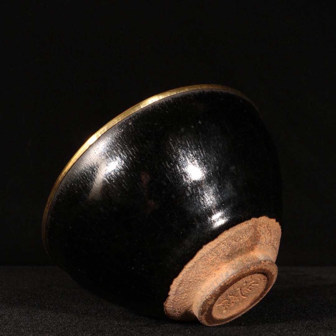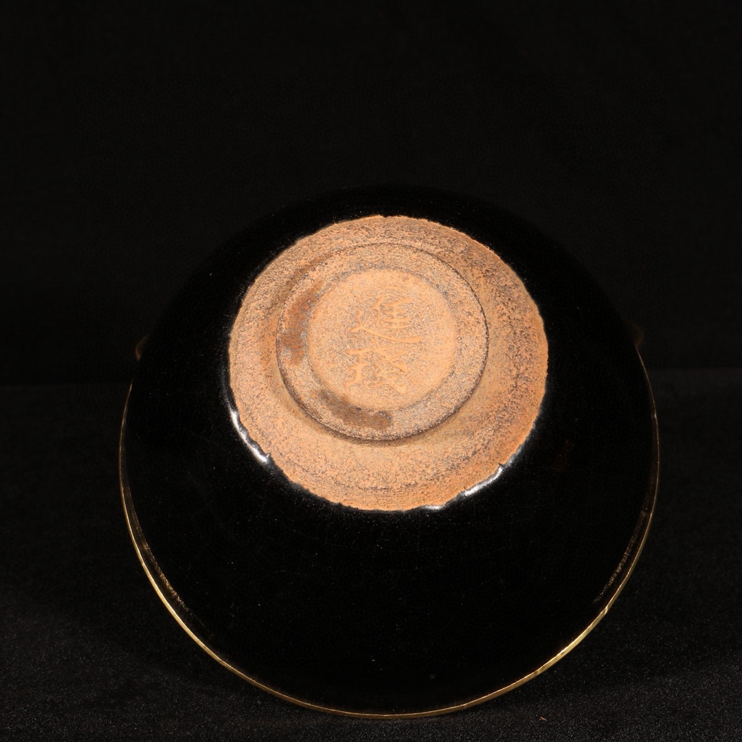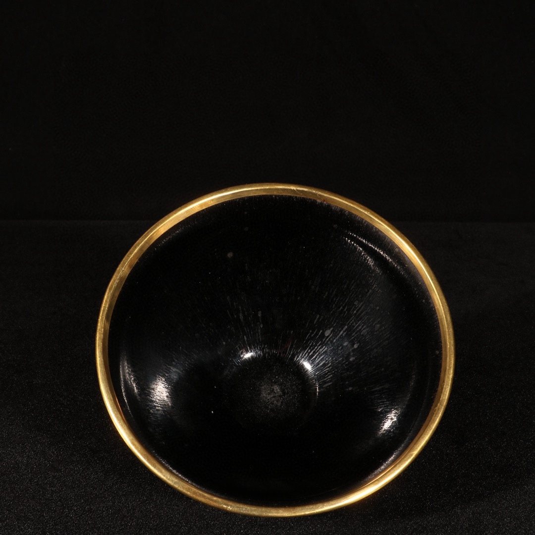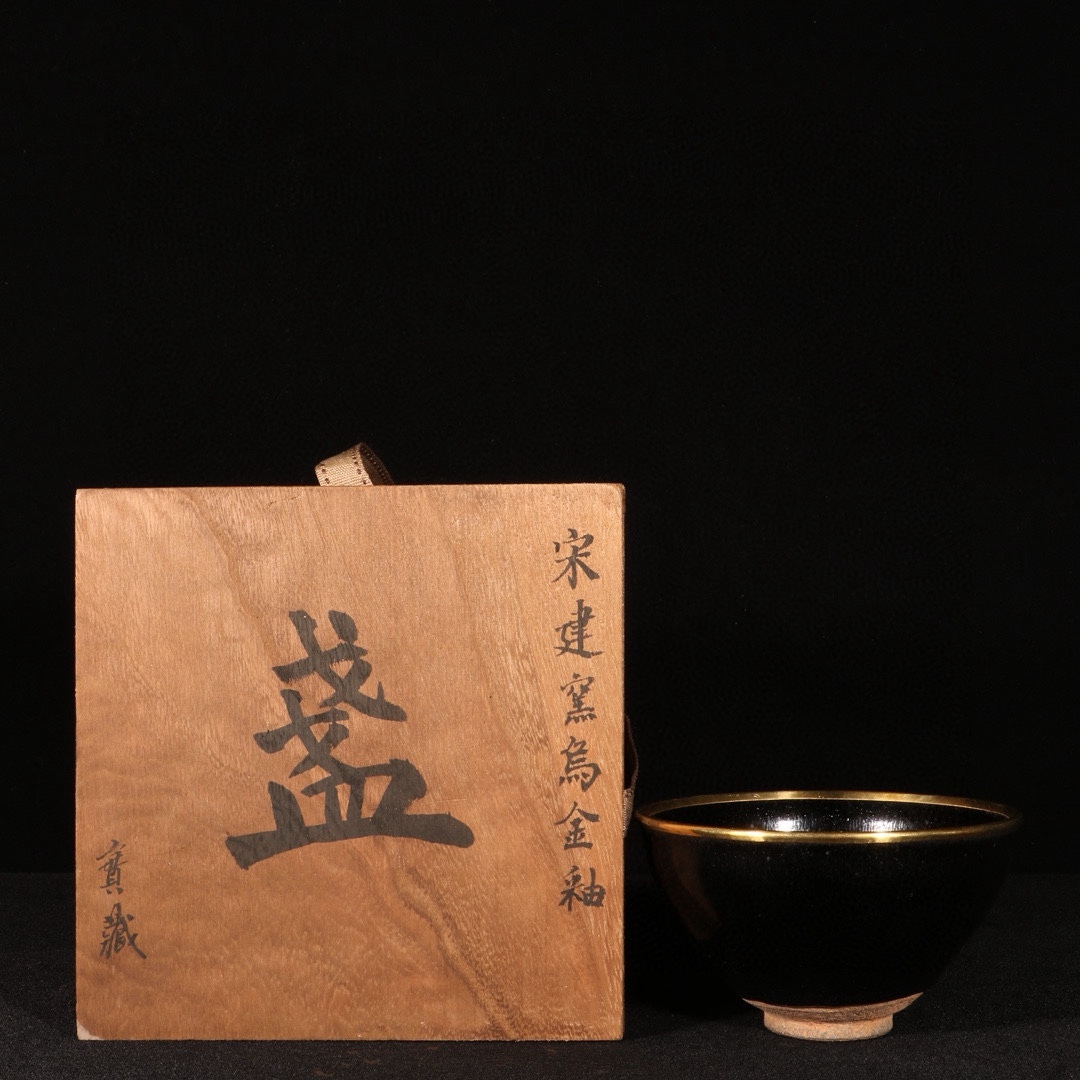 宋時代 建窯 包金 烏金釉杯 共箱付き 陶磁器 中国美術 高さ7.2 cm 直径12.5 cm 骨董品 唐物 807