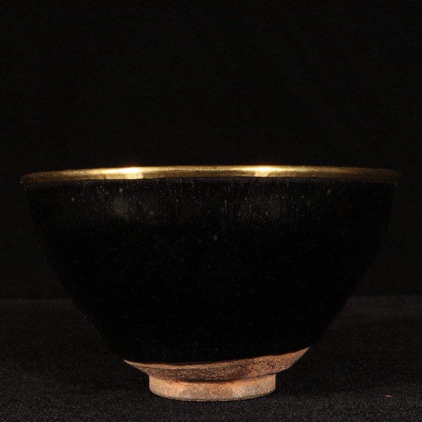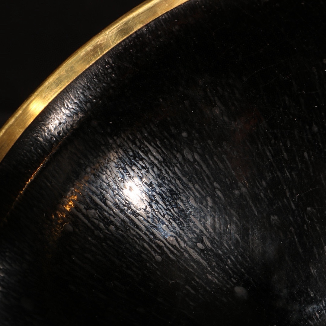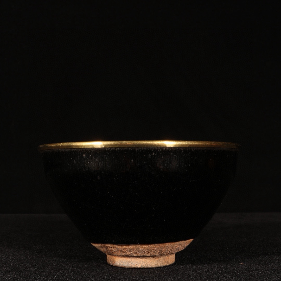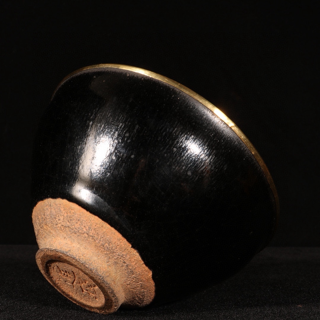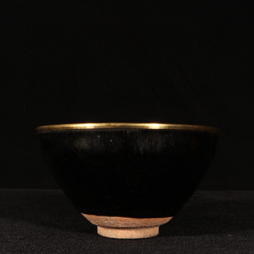 宋時代 建窯 包金 烏金釉杯 共箱付き 陶磁器 中国美術 高さ7.2 cm 直径12.5 cm 骨董品 唐物 807