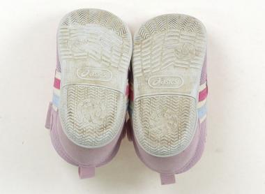 実際のサイズ表記は、13.0cm。マジックテープ留め。毛羽立ちや薄汚れが見られます。