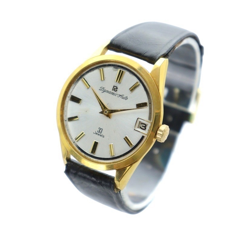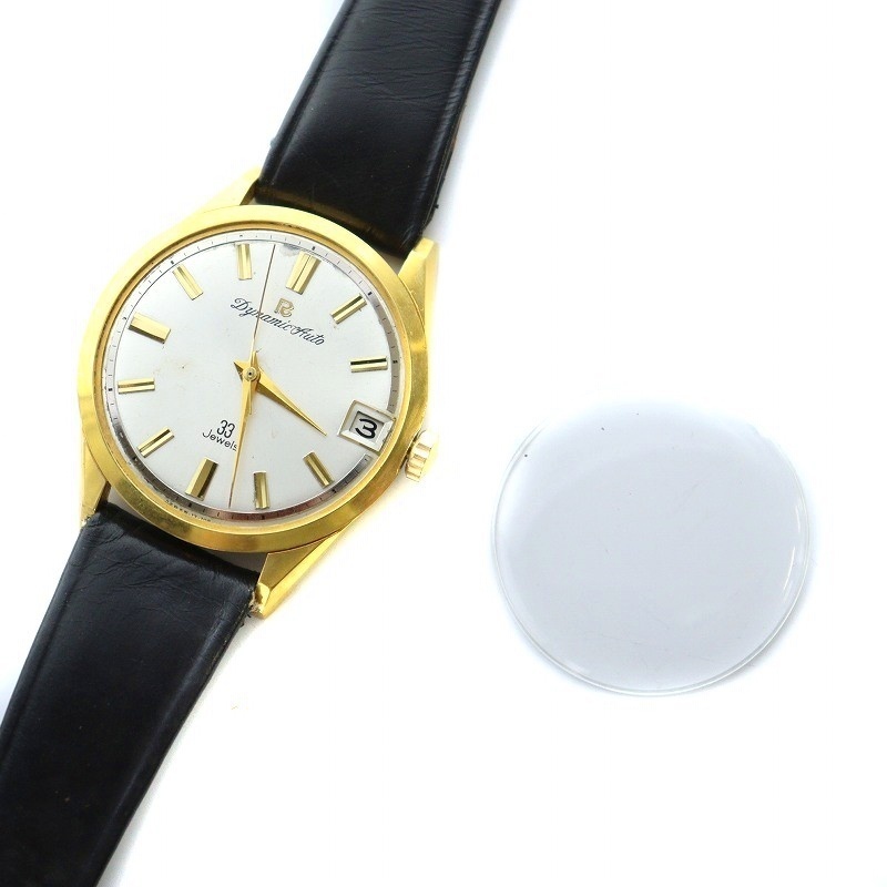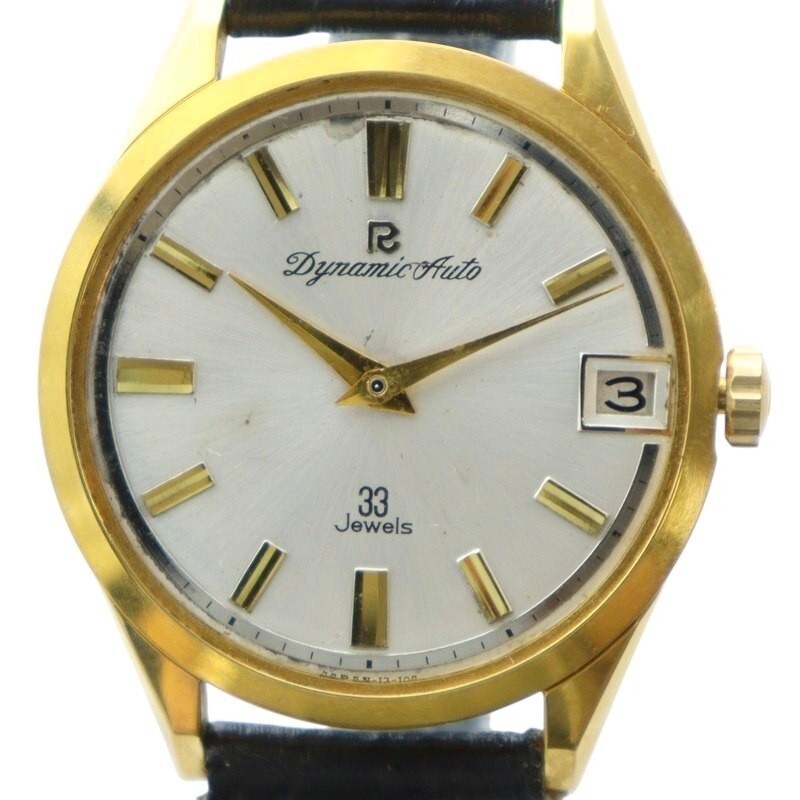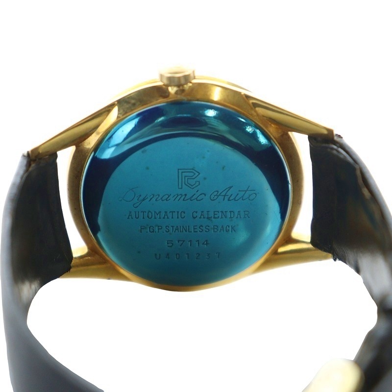 リコー RICOH ジャンク品 57114 ダイナミック オート 33石 腕時計 自動巻き F.G.P 金メッキ デイト 白文字盤 ゴールドカラー 金色