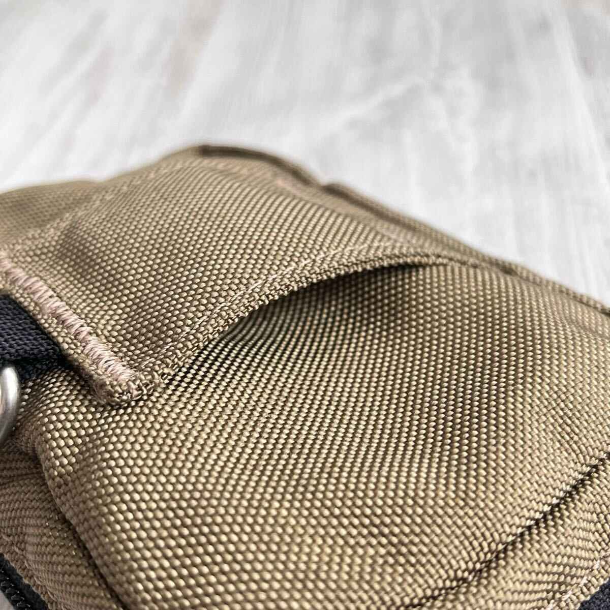 小さ目のサイズ感ですが、何かと使い勝手の良い容量です。コーデュラナイロンですが、優しい質感です。