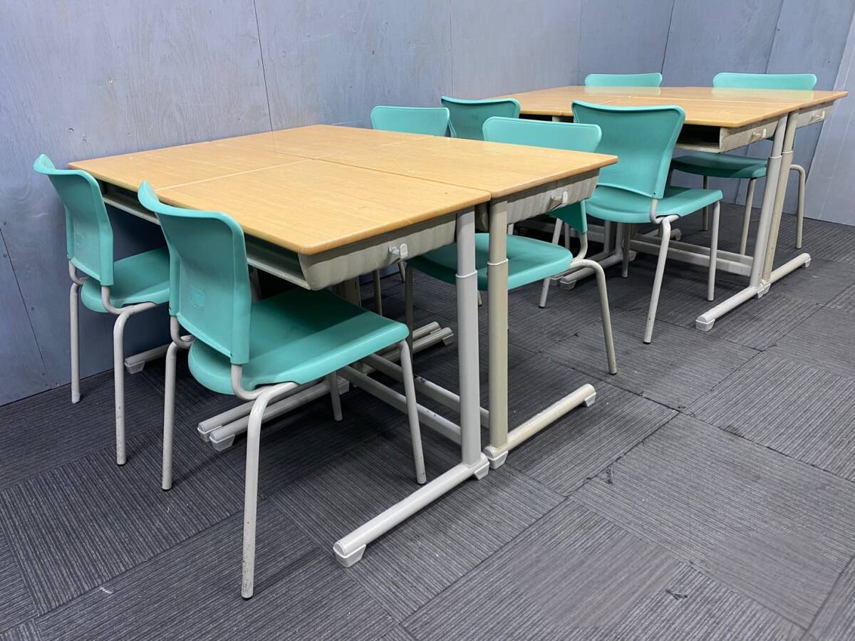 ◆管2365◆自社便対応地域あり◆オカムラ製◆上下可動式学童机8台 4-6号(旧JIS規格特-4号) ◆スタッキングチェア8脚セット◆学校学習塾等