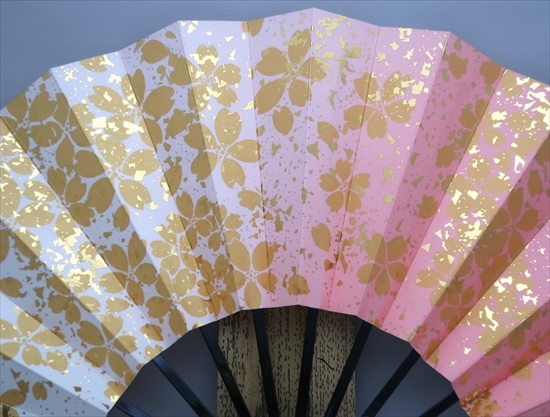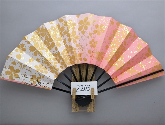 舞扇子 A2203 金泥桜 金箔ちらし ピンク横ぼかし 【箱なし】