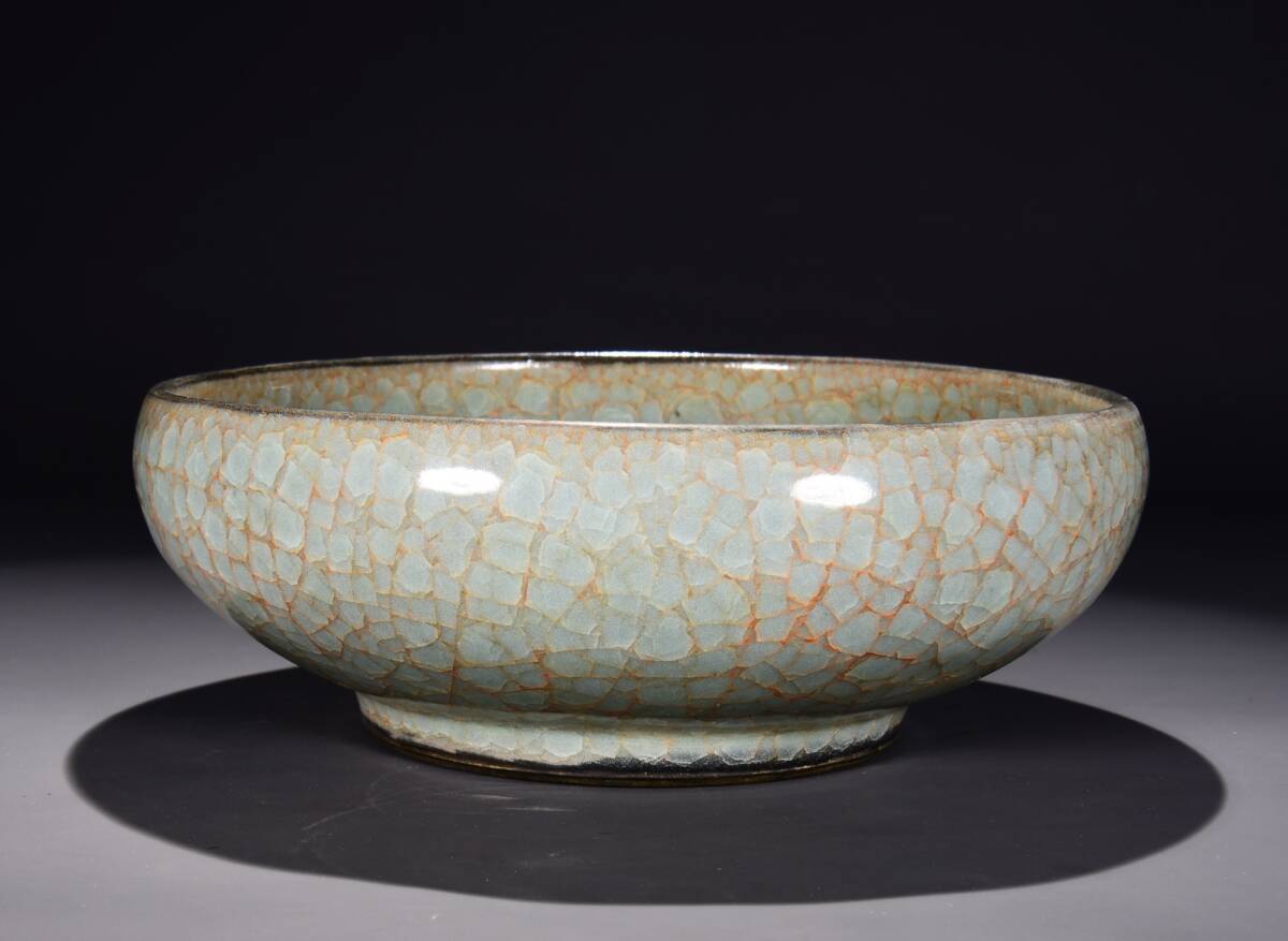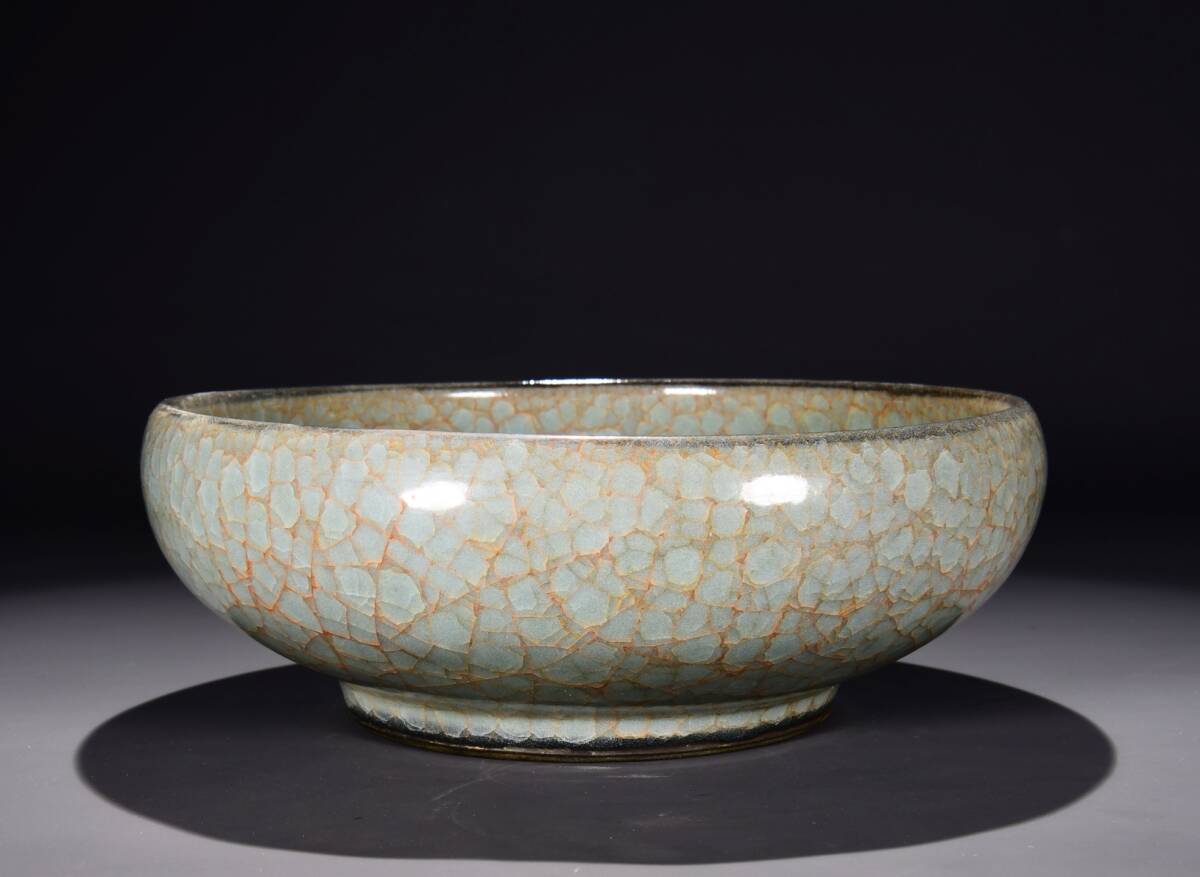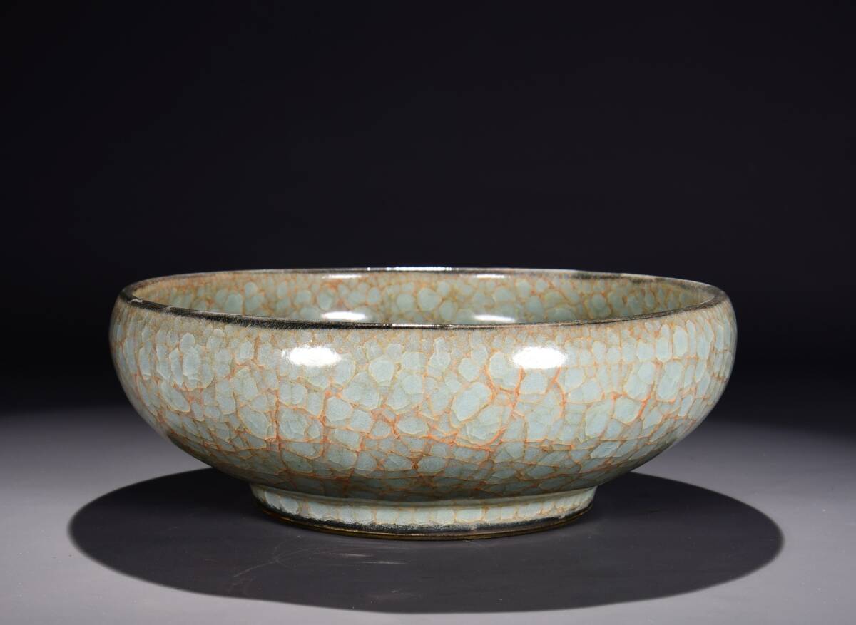 宋時代 古陶磁器 官窯 双色 冰裂紋 水洗 筆洗 磁器 文案置物 擺件 時代物 古董品 骨董 旧家蔵出し 唐物 中国古玩 古美術