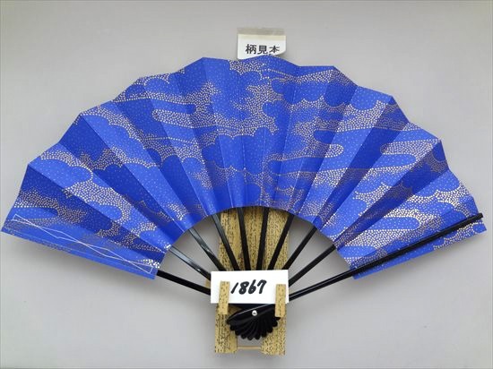 舞扇子 A1867 金箔水玉雲 青地 【箱なし】