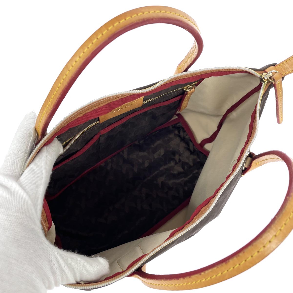 スト社外×ヌメ革若干シミ×スレ 【外側】底角擦れ、ハンドル付け根近辺擦れ汚れ、レザー部擦れ、シミ汚れ有り ※ストラップ正規品外- 【内側】- ※スレ傷や汚れがある場合はその一部分のみ撮影を行っております。画像に写っていない箇所にも同じようなスレ傷や汚れがある場合がございます。 |