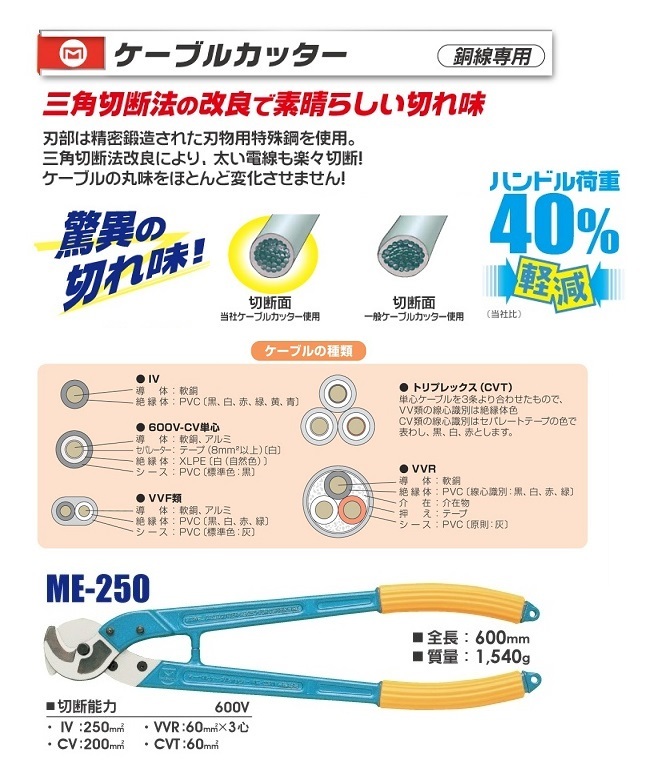 マ-ベル製のケ-ブルカッタ-のME-250型です。