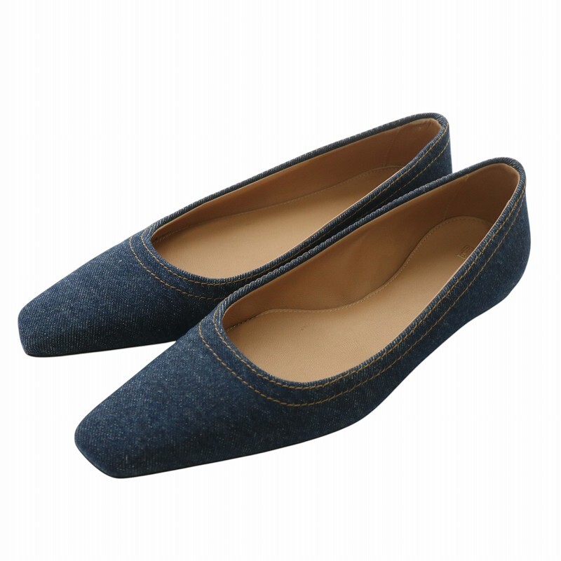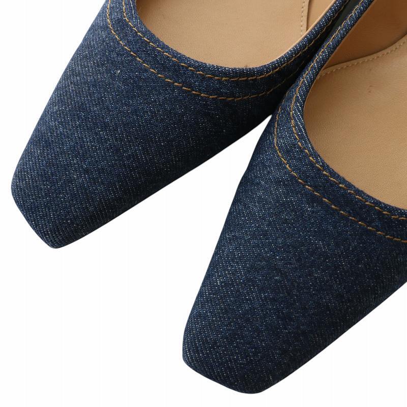トーテム TOTEME パンプス フラットシューズ デニム キャンバス スクエアトゥ 36 23cm インディゴ 紺 ネイビー