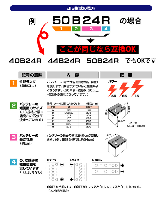 カルシウム極版バッテリーで従来品より大容量・長寿命・高性能になっております。 |