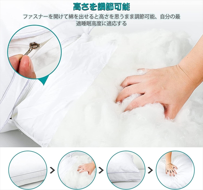 詰め物を取り出すことで枕の高さを自由に調節できます。