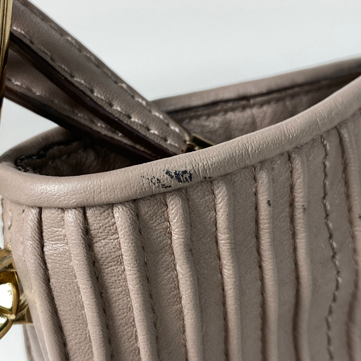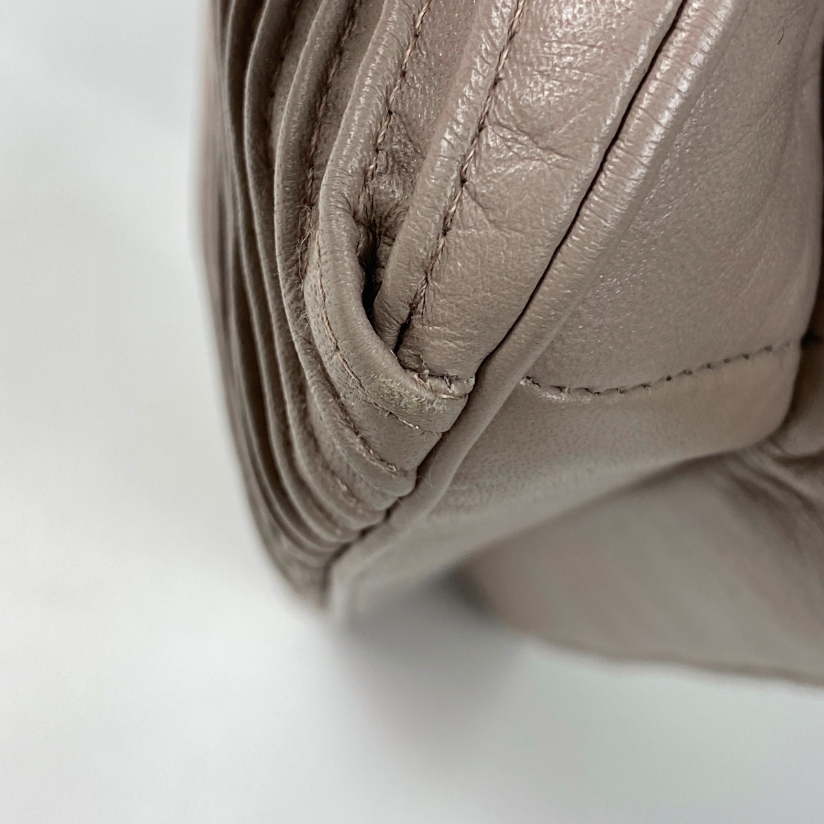 《全体》型崩れ、生活臭、スレ、キズ、シワ、汚れ 《外側》若干のべたつき 《内側》汚れ、色ムラ、色褪せ、インク跡 《金具》小キズ 《開口部》ひび割れ 保存袋に劣化あり。 |