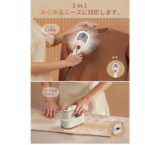 【乾燥/蒸気両用】蒸気アイロンとしてだけでなく、強力な蒸気を放出し、シワを素早く伸ばし、衣類を除菌し、傷つけません。また、水を使わずにドライアイロンとしても使用でき、さまざまな場面で衣類を素早く平らにでき、便利です。