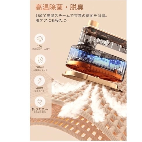 【強力スチーム噴射】本製品は新たにアップグレードされ、予熱時間が短縮され、従来の製品の30秒から15秒でスチームが発生します。ダブルジェットノズル設計で、1分間に最大18グラムのスチームを噴射し、衣類の表面を均等にカバーし、高効率で衣類をアイロンがけできます。