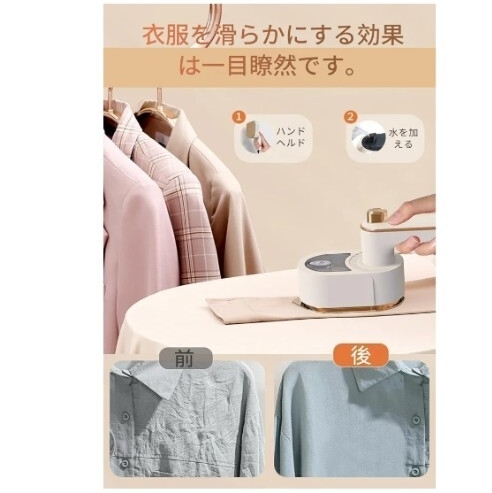 【軽量で携帯性が高い】水タンクが満タンでも重量はわずか450グラムで、従来の製品の1/4です。女性でも片手で操作でき、軽くて持ちやすいです。掌サイズで、いつでもどこでも簡単に衣類の手入れができます。家庭で使用しても収納スペースを取りませんし、出張や旅行にも便利に携帯できます。