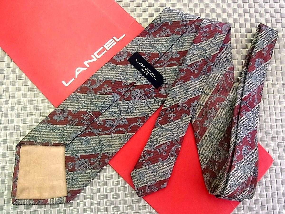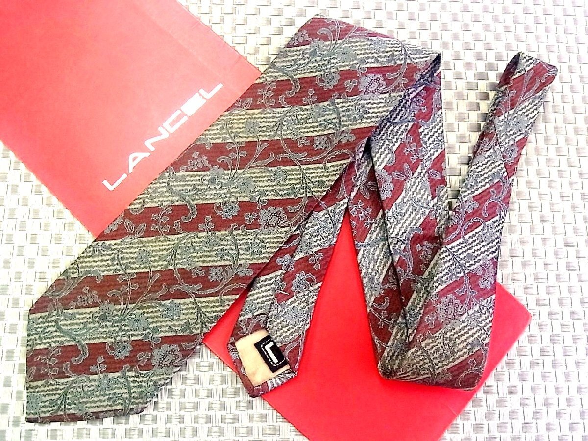 【在庫処分セール】●特売●FK2-1957●ランセル【刺繍 花 植物 ストライプ 柄】ネクタイ●