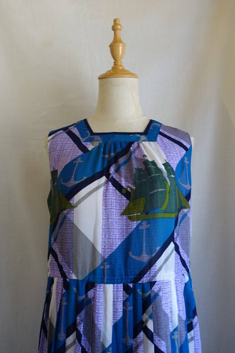 ○[60s70s80s vintage ヴィンテージ マリーン イカリ ノースリーブ ワンピース250715]USED古着 昭和レトロ・モダン・モッズ