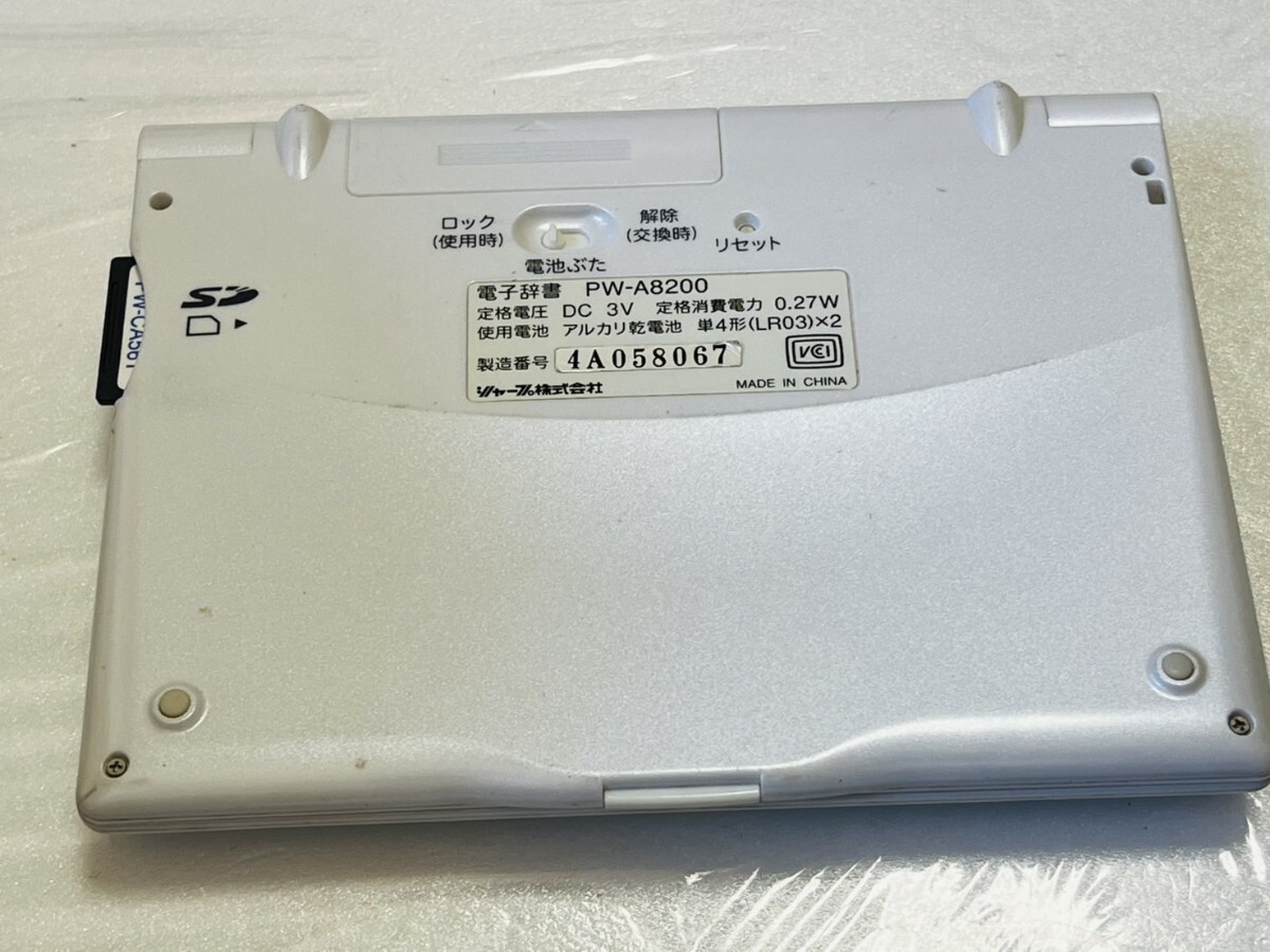 SHARP シャープ 電子辞書 PW-A8200 乾電池使用 稼動品