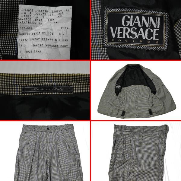 !!!絶品!!!★ヴェルサーチ★VERSACE★お洒落な白黒チェック千鳥格子デザイン★気品が漂う春夏ジャケット&パンツ富裕層の華美なスーツ46/L48