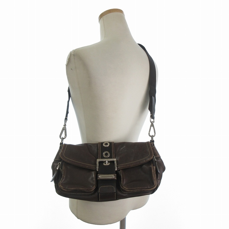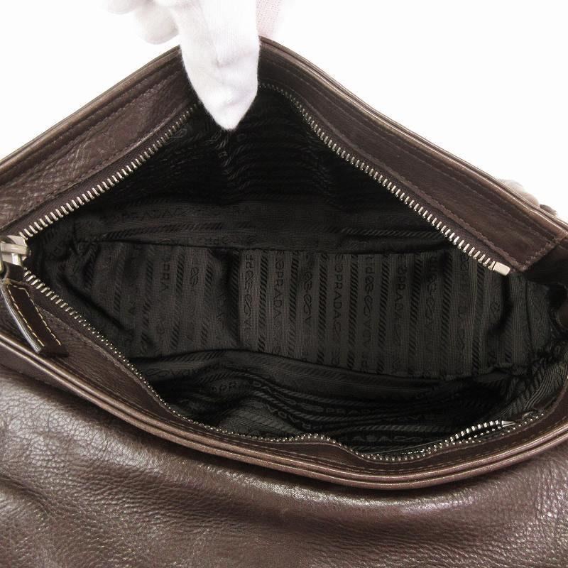 プラダ PRADA ショルダーバッグ 肩掛け 三角プレート レザー 茶 ブラウン レディース
