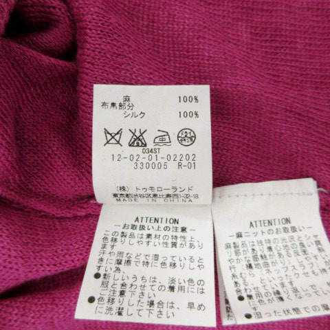 マカフィー MACPHEE トゥモローランド リネンドルマンスリーブニット 12-02-010-02202 パープル系 ピンクパープル 1 レディース