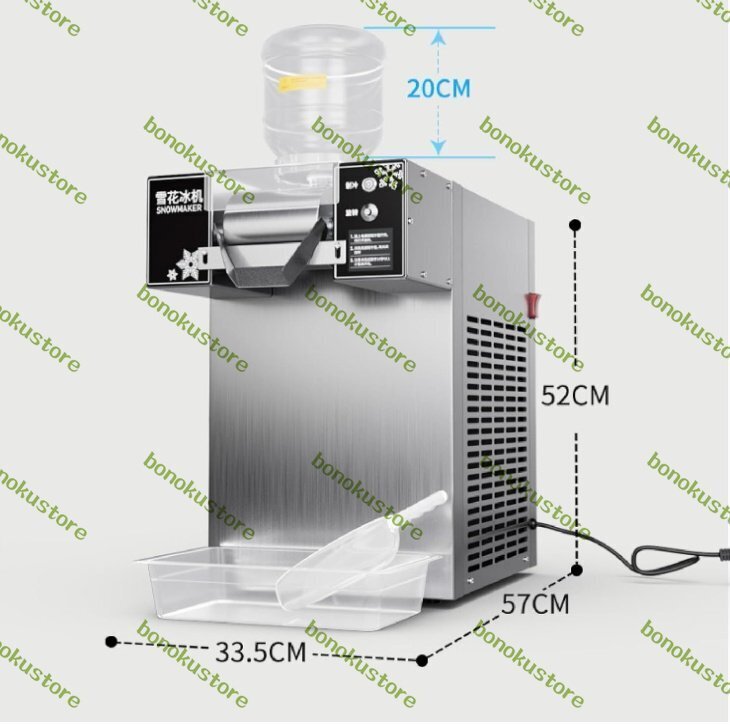 たくさんの展出品の中に弊店の製品をご覧頂き、ありがとうございます。【製品詳細】名前: スノーアイスマシン製品サイズ: 33.5*57*52 センチメートル製品電力: 1200W製品重量: 31KG製氷量:純水 180KG (毎日)砂糖水 220KG (毎日)アクセサリー:バレル×2受け取りボックス×1シ
