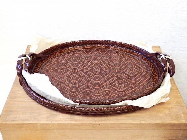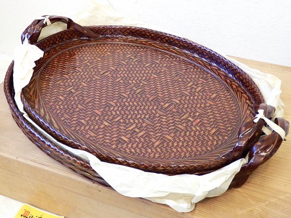 ご覧頂き誠にありがとうございます。 トラブル回避の為、予めプロフィールをご覧頂いた上でお取引をお願い致します。 【商品内容】 籃胎漆器 脇引 脇取 盆 大小二枚 木製漆器 2枚 懐石 会席 茶懐石 湯盆 脇取盆 茶道具 茶事 【商品詳細】 未使用保管品 サイズ: 横 約49.5㎝ 奥 約37.5㎝ 高 約3㎝ サイズ: 横 約45.5㎝ 奥 約34.5㎝ 高 約3㎝ 外箱痛みがみられます 元箱にプチプチを巻いての発送となります 付属品:写真の物で全てとなります 商品ランク:A 特筆事項 : ☆商品ランクの目安☆ N:新品・未使用品 S:極美品・傷や汚れは見当たらない A:美品・使用感少なめ・傷や汚れは目立たない B:並品・使用感あり・多少の傷や汚れがある C:使用感が強い・傷や汚れが目立つ D:傷汚れ非常に多め E:修理必須・動作未確認などのジャンク品 照明や自然光、お使いのディスプレイの関係により 色味が異なって見える場合がございます。 予めご了承ください。 【商品 サイズ】 宅急便 120サイズ