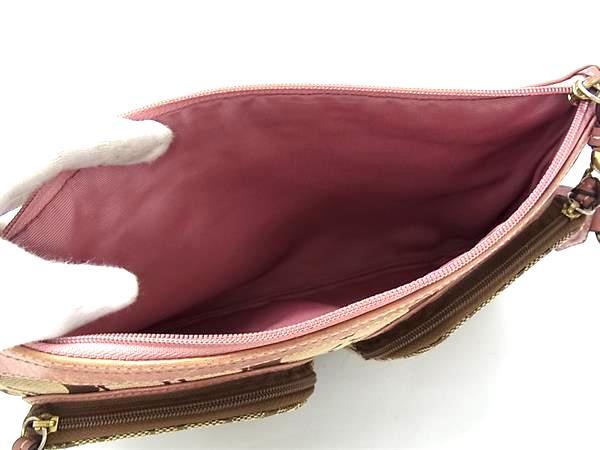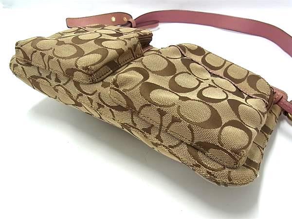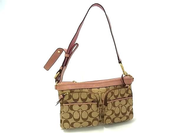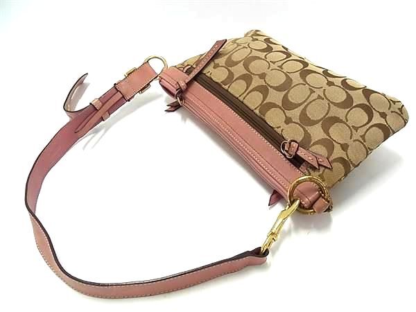 1円 COACH コーチ シグネチャー キャンバス×レザー ワンショルダーバッグ 肩掛けかばん レディース ブラウン系×ピンク系 BR0104