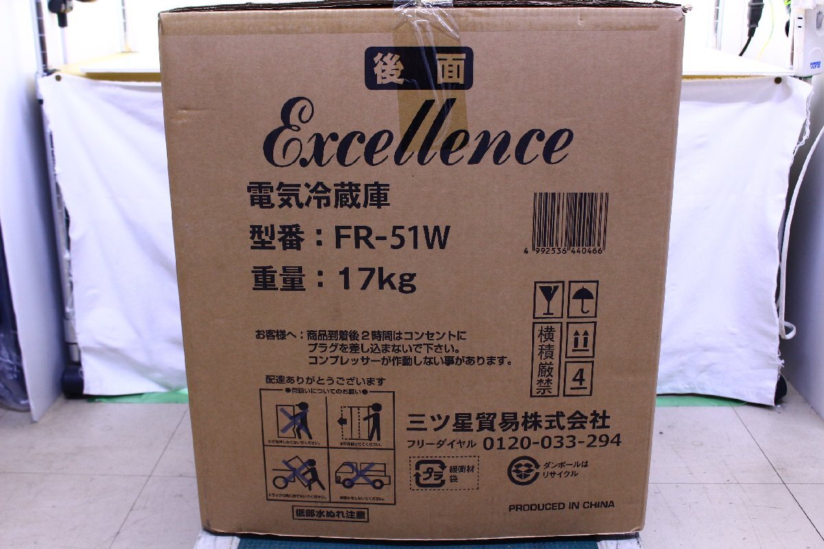 ●【未開封】三ツ星貿易 FR-51W 電気冷蔵庫 小型冷蔵庫 45L コンプレッサー式 省スペースタイプ ホワイト【10935732】
