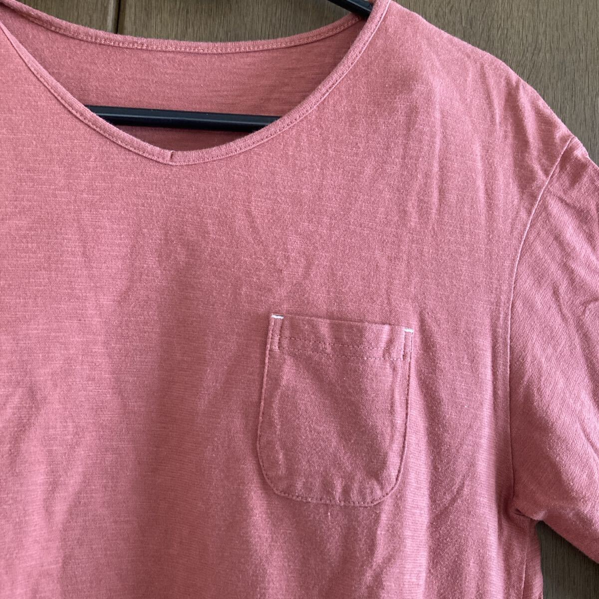 サイドスリット、袖口ロールアップ、小さなポケットのあるデザインです。