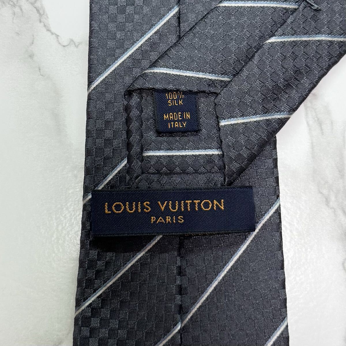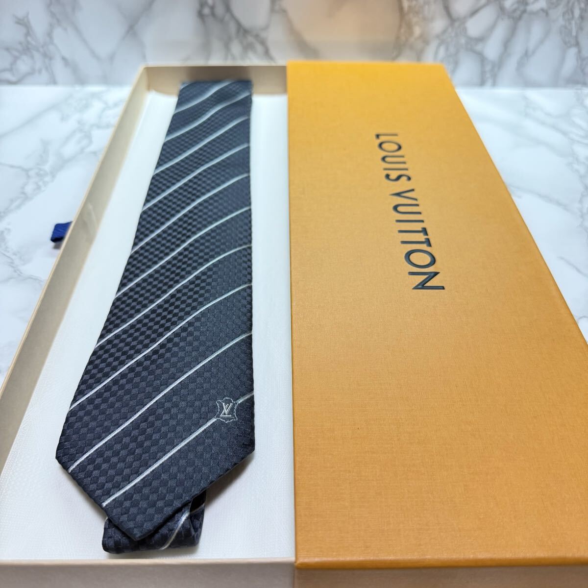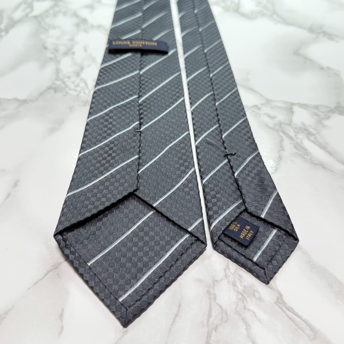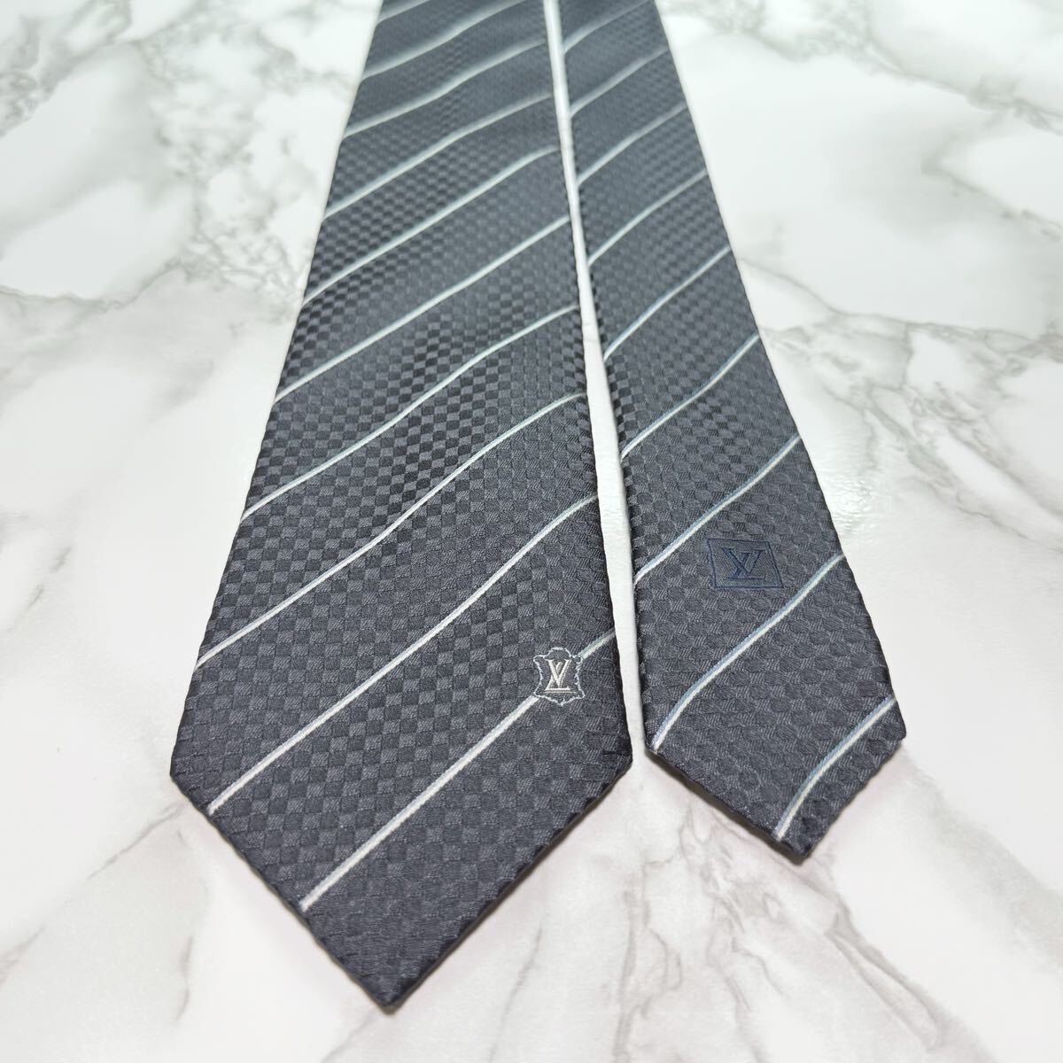 マイクロダミエ プティダミエ ストライプ レジメンタル LVロゴ レギュラータイ